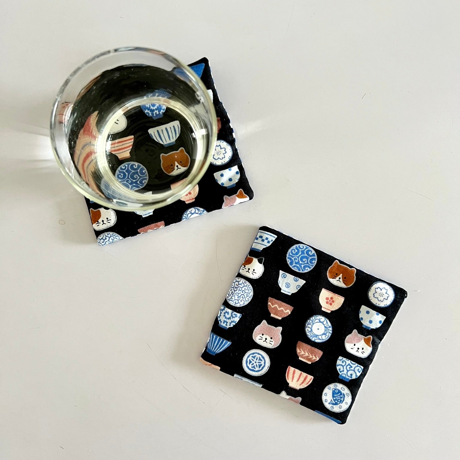 Japanese Cup Bowl Cat Fabric Coaster | Coaster